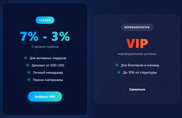 | Мин.вклад | 10$ | Рефбек | 3.5% |
