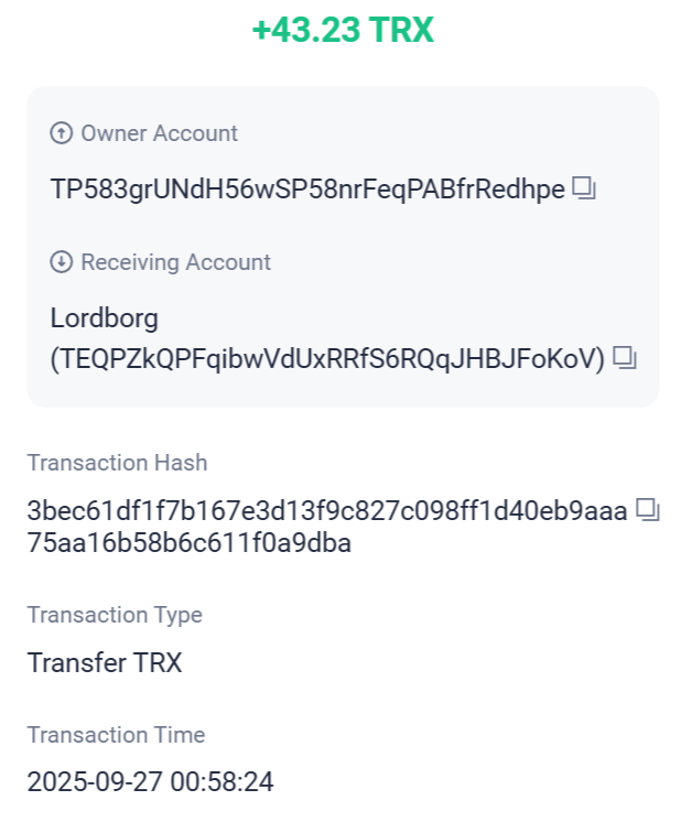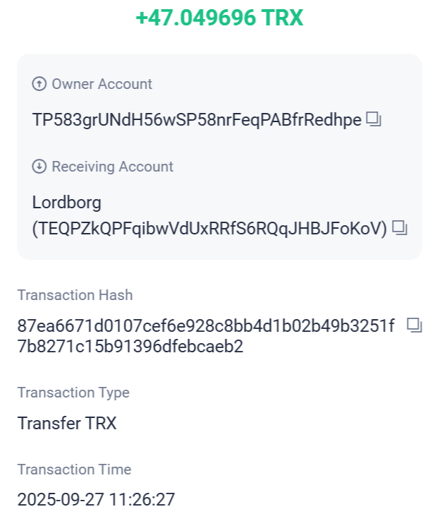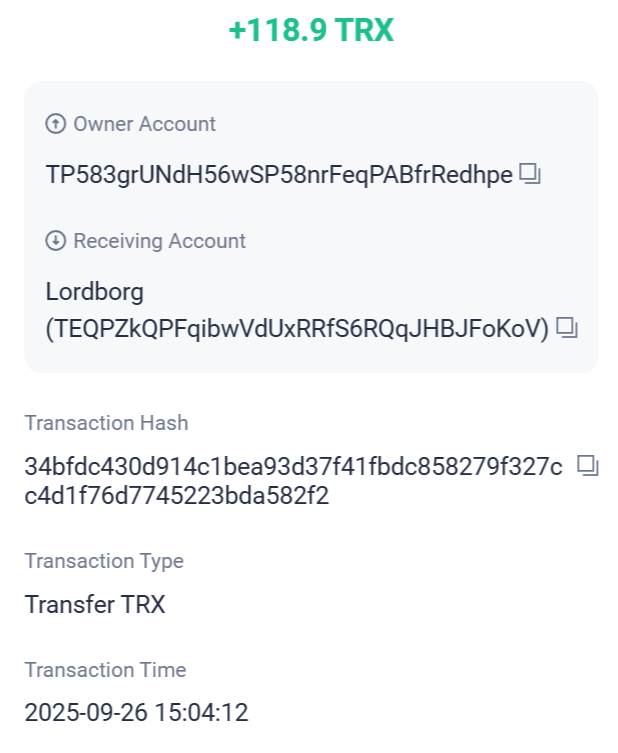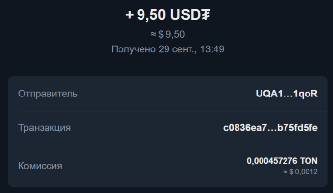 - Пример комментария: -100 USDT, Sep-25-2025 11:58:35 AM, 0x90bef062393f7dfb2705fb9acbc0fec54c812aa8016370f3483d4265efea4087