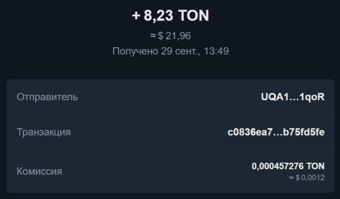 | 29/09/2025 09:42 | ma*** | 65$ / 2.93$ | 0x0*** | Отклонено |