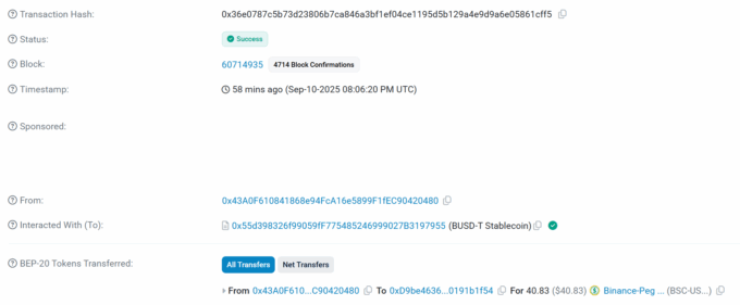 5. Пример комментария: -100 USDT, Sep-08-2025 05:42:24 PM, 0x5857f8da96bbac37e747f75f50ccca585495e5c844a08b3f7d647d88d7b4794e