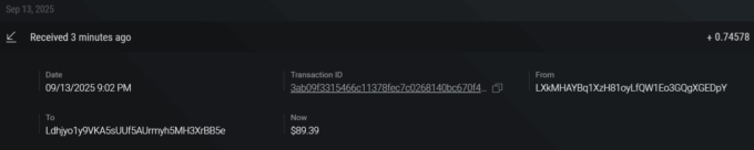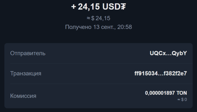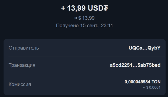 15/09/2025 08:50 Ya*** 209$ / 14.63$ TEc*** Выплачено
