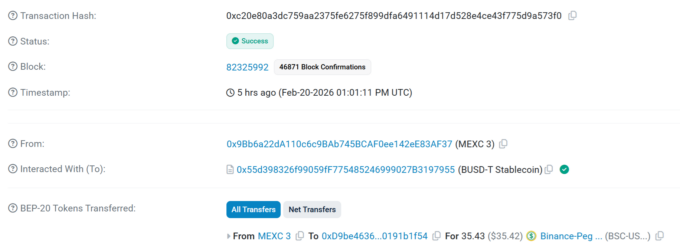 Пополнение и вывод через Tether BEP20