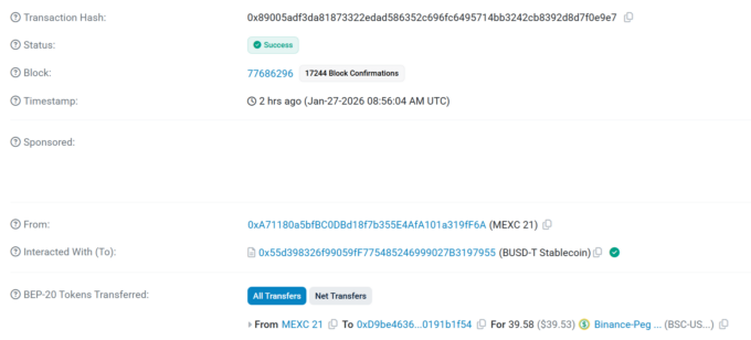 - Пример комментария: -300 USDT, Jan-22-2026 10:31:32 AM, 0x03571fcd24aafad05dc4485682ced7c876cf26a4680501ad9fd50fbb42b00db5
