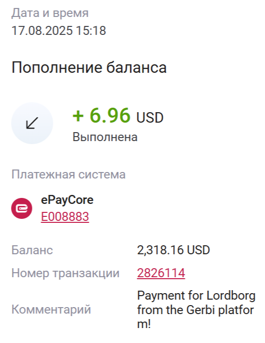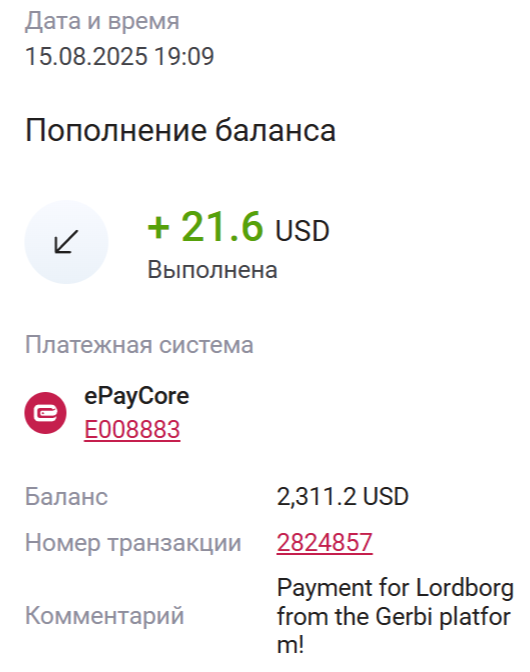 5. Пример комментария: -100 USD, 12-08-2025 16-41, 2822245