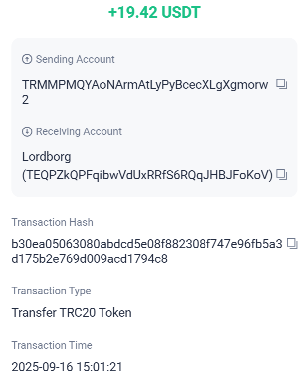16/09/2025 08:36 | de*** | 86$ / 1.72$ | 0x3*** | Выплачено |