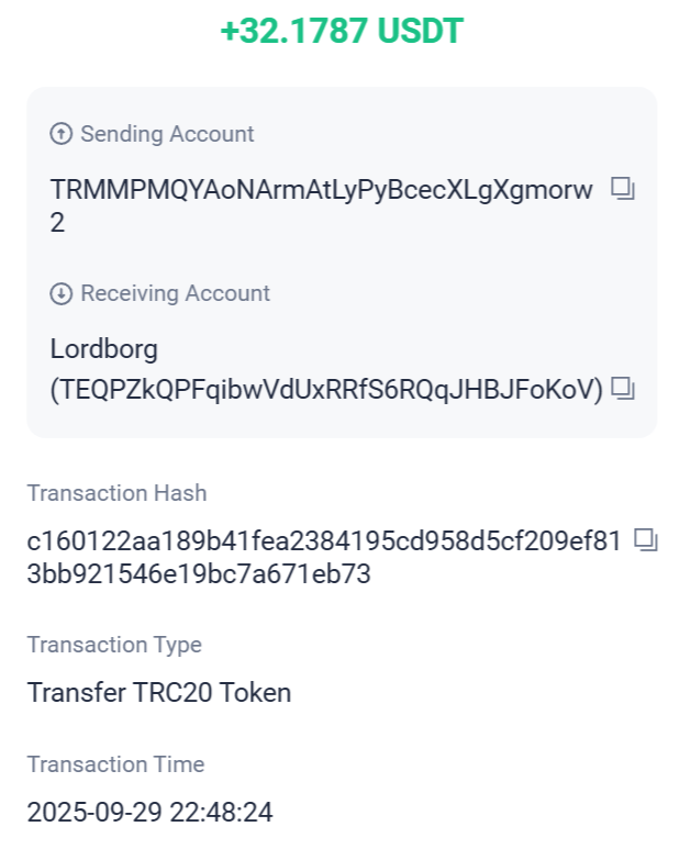 30/08/2025 09:08 | Vi*** | 35$ / 0.7$ | TBW*** | Выплачено |